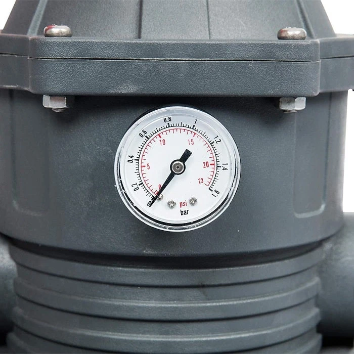 Ce filtre à sable de 11,3 m3/h sera pratique pour les bassins contenants jusqu’à 66 m3/h.